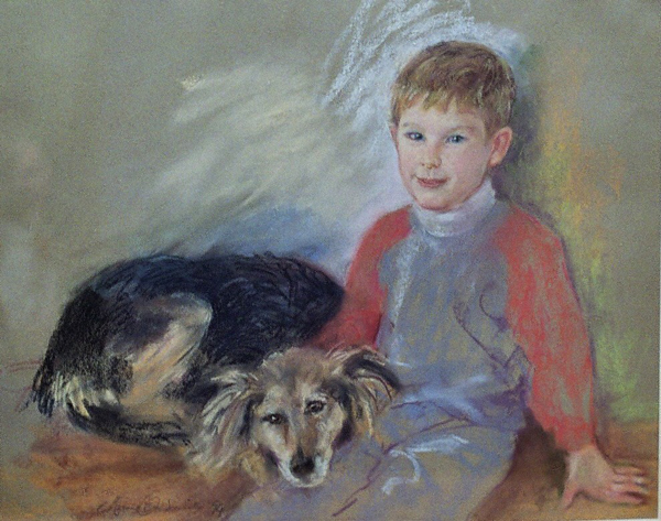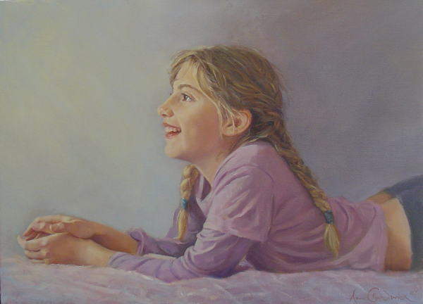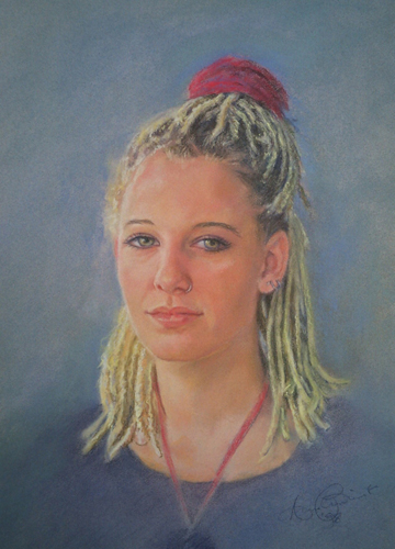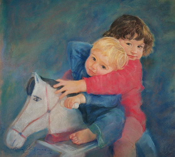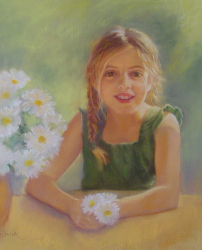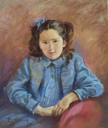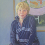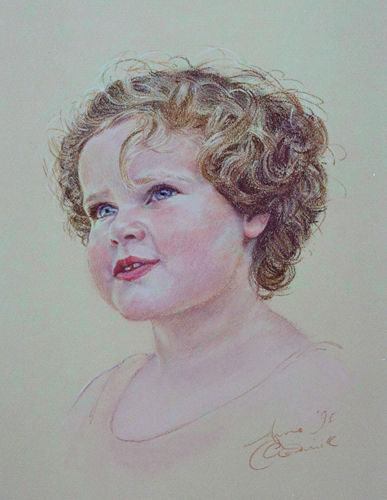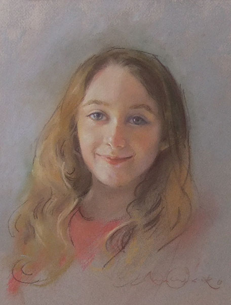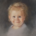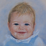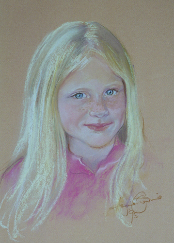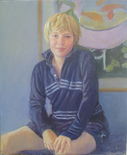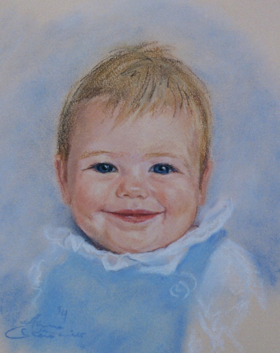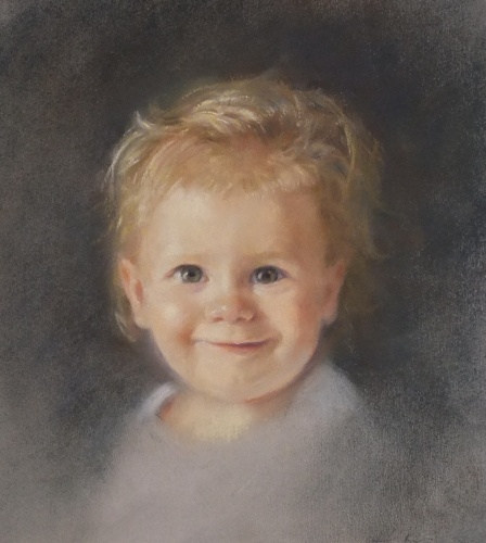 Although most children amaze their parents by sitting unusually still for their portrait, their concentration is never as good after a break, so I have to paint all the information in the first hour or so. We chat, sing songs or whatever!