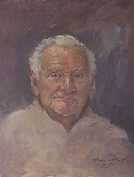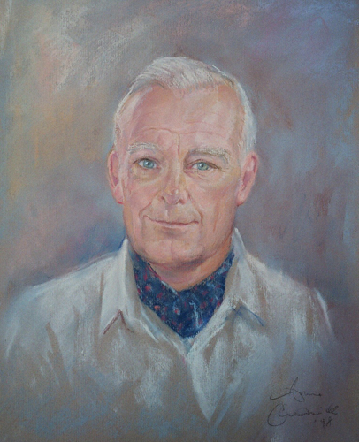 When bereaved clients commission a portrait, they usually only have small, informal snapshots for me to work from. I like to think that the person I am trying to bring to life is looking over my shoulder to guide my brush.