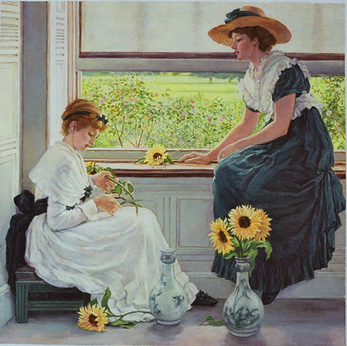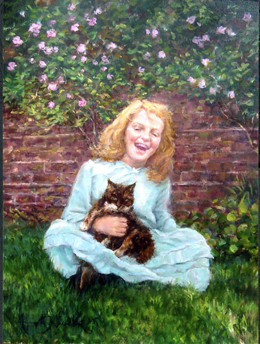 From time to time I am asked to paint a copy of an original painting. Sometimes the original is part of a museum collection, as in the case of my copy of Cuthbert Orde’s portrait of flying ace, Air Chief Marshall Sir Harry Broadhurst, which is in the RAF Museum at Hendon. Or is to be inherited by another person, as was this delightful Victorian painting of a much-loved grandmother as a child. Or is a faded but cherished print of a painting by George Dunlop Leslie.