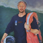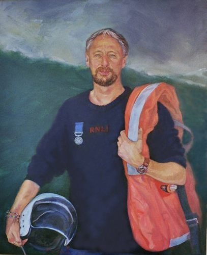 Captains of industry and other important people are usually to busy to sit for more than an hour or two, so I make a few sketches and take photographs. Company portraits can be a bit anonymous – men in suits – so I like to add a clue to the sitter’s interests and personality. Sometimes the client will want details painted into the portrait that seem a little incongruous, for example, surely a silver medal winning lifeboatman wouldn’t be wearing his medal on a rescue mission? But it’s my mission to ensure the customer is happy.