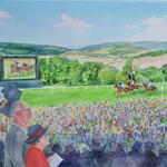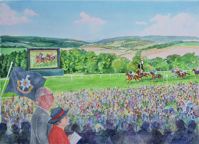 A commissioned artist’s life is never dull as clients often come up with interesting projects. I have sketched ten trainee Concorde pilots, painted a regimental retirement gift of a day at the races, and an enhanced version of an estate agent’s board for his office.